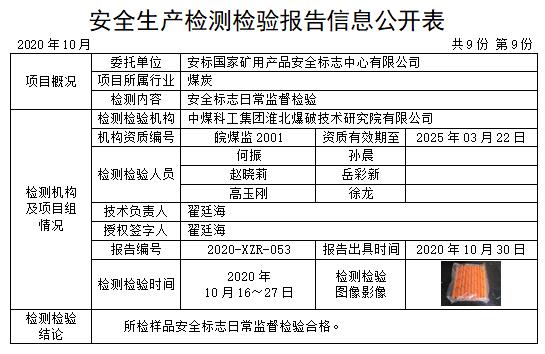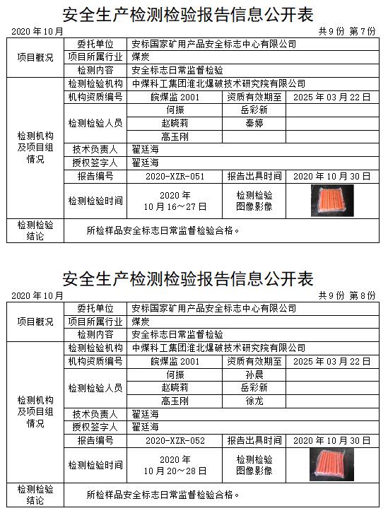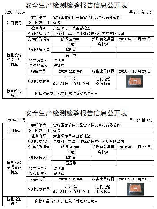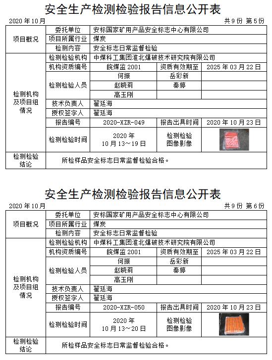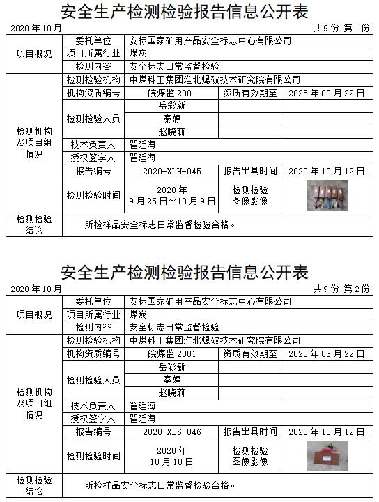 安全生產(chǎn)檢測檢驗(yàn)報(bào)告信息公開表(2020年10月)
