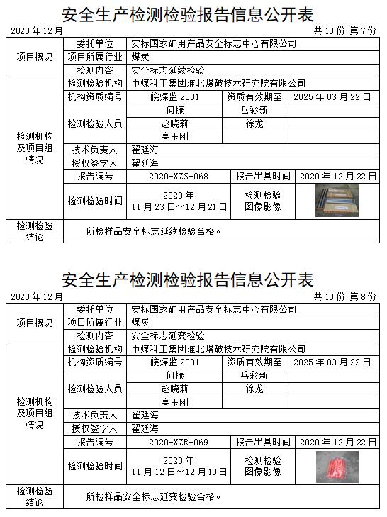 安全生產(chǎn)檢測(cè)檢驗(yàn)報(bào)告信息公開(kāi)表(2020年12月)