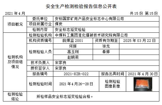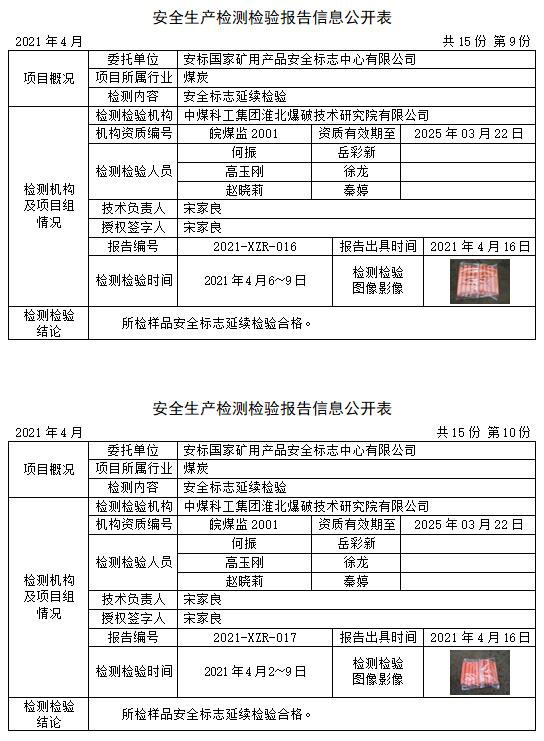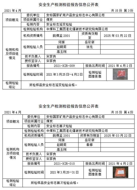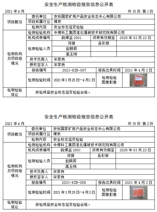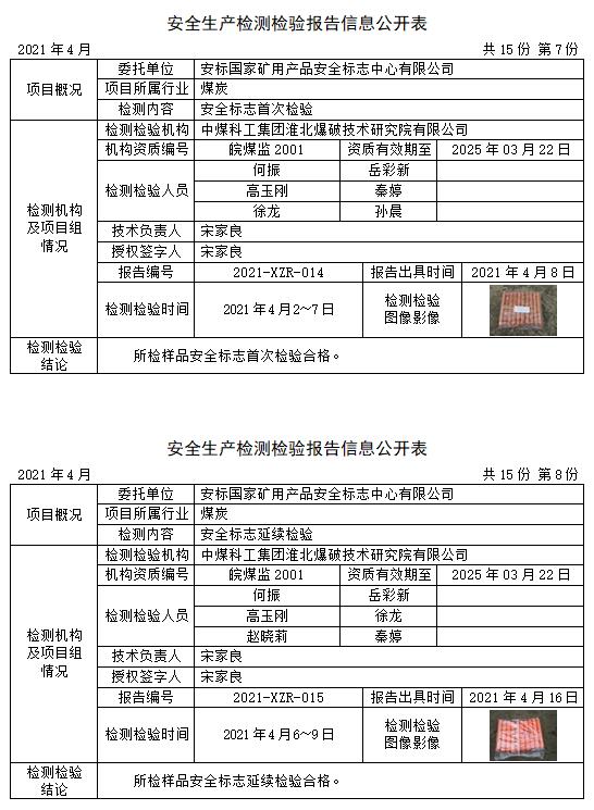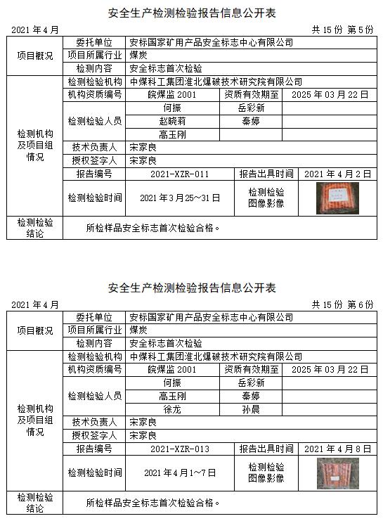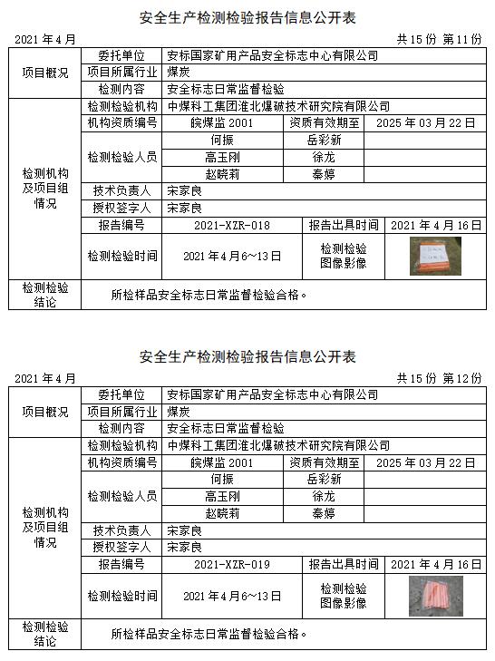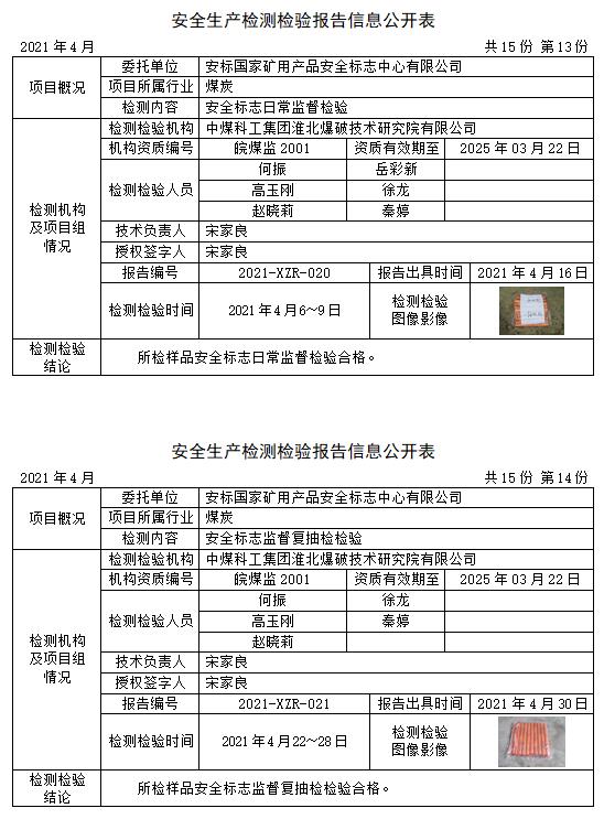 安全生產(chǎn)檢測檢驗(yàn)報(bào)告信息公開表(2021年4月)