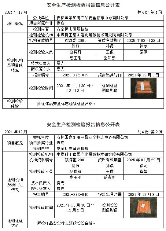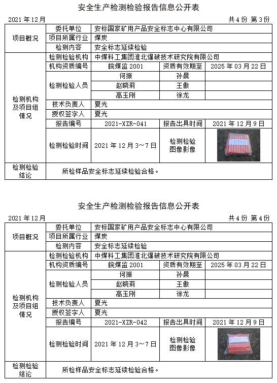 安全生產(chǎn)檢測檢驗報告信息公開表(2021年12月)