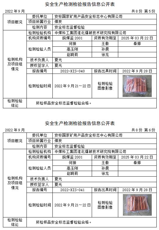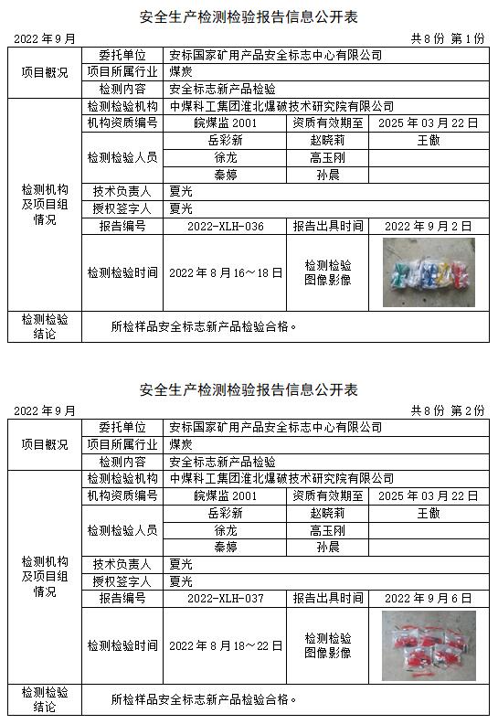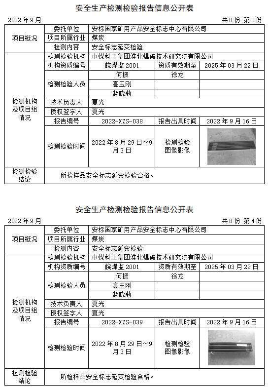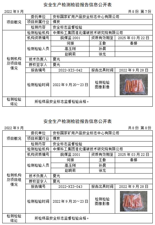 安全生產檢測檢驗報告信息公開表(2022年9月)