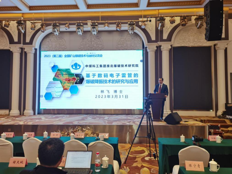 會議期間,與會專家、學者圍繞綠色爆破新理論新技術(shù)進展與發(fā)展趨勢、露天礦山和井下礦山爆破開采技術(shù)、智慧礦山建設(shè)等內(nèi)容作了精彩演講,并對爆破技術(shù)和行業(yè)未來發(fā)展趨勢進行展望。爆破院林飛以“基于數(shù)碼電子雷管的爆破降振技術(shù)的研究與應(yīng)用”為題在會上作交流發(fā)言,和與會專家深入探討了基于應(yīng)力波的干擾降振理論及其工程應(yīng)用,取得良好反響。