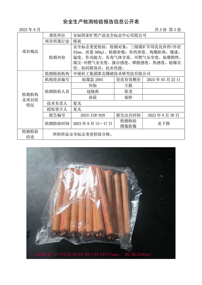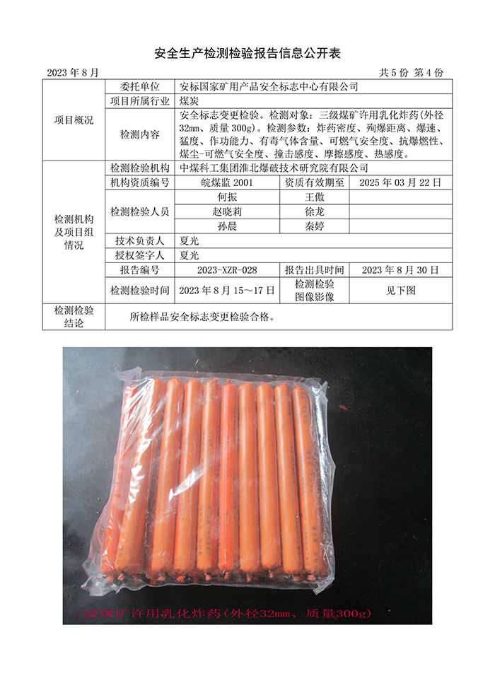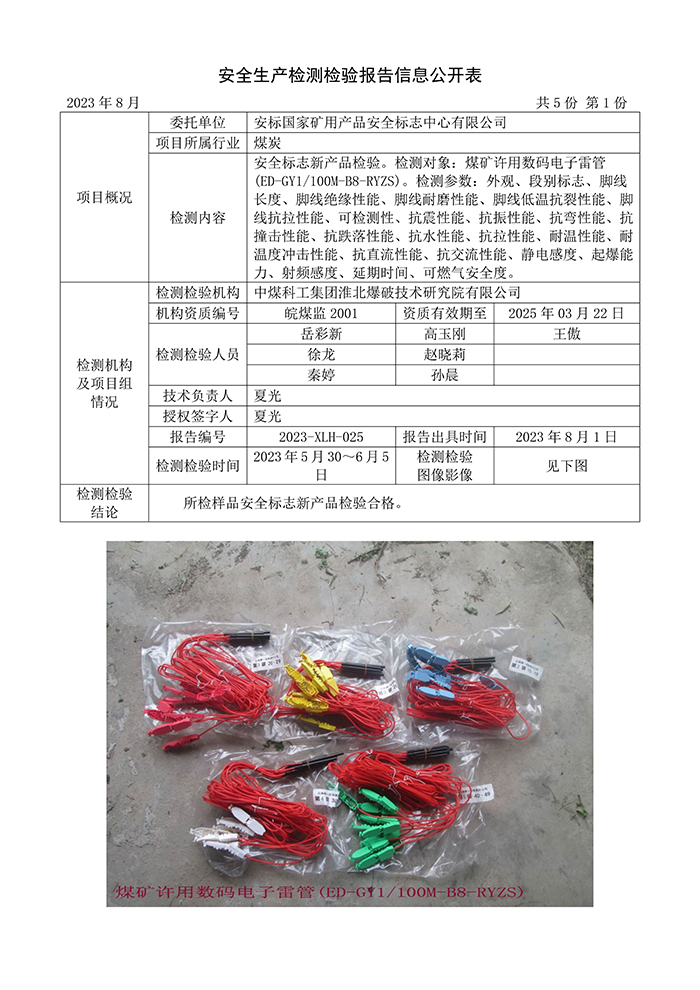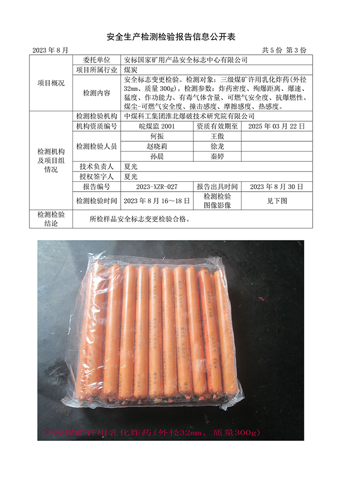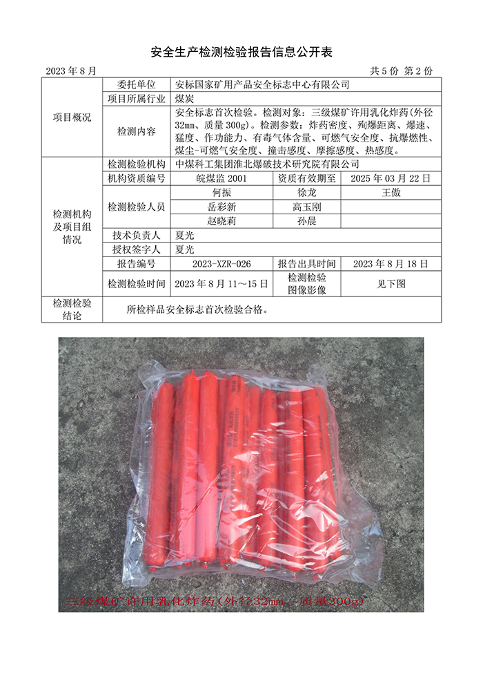 安全生產(chǎn)檢測檢驗報告信息公開表(2023年8月)