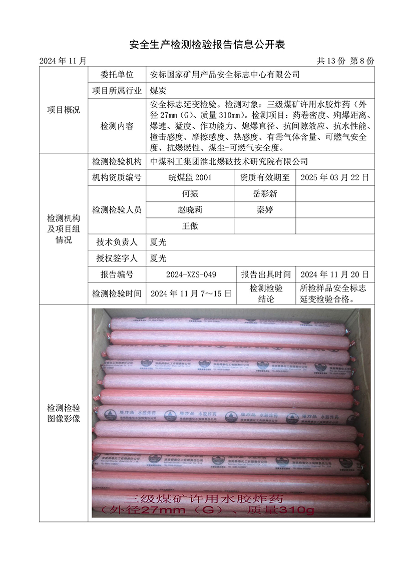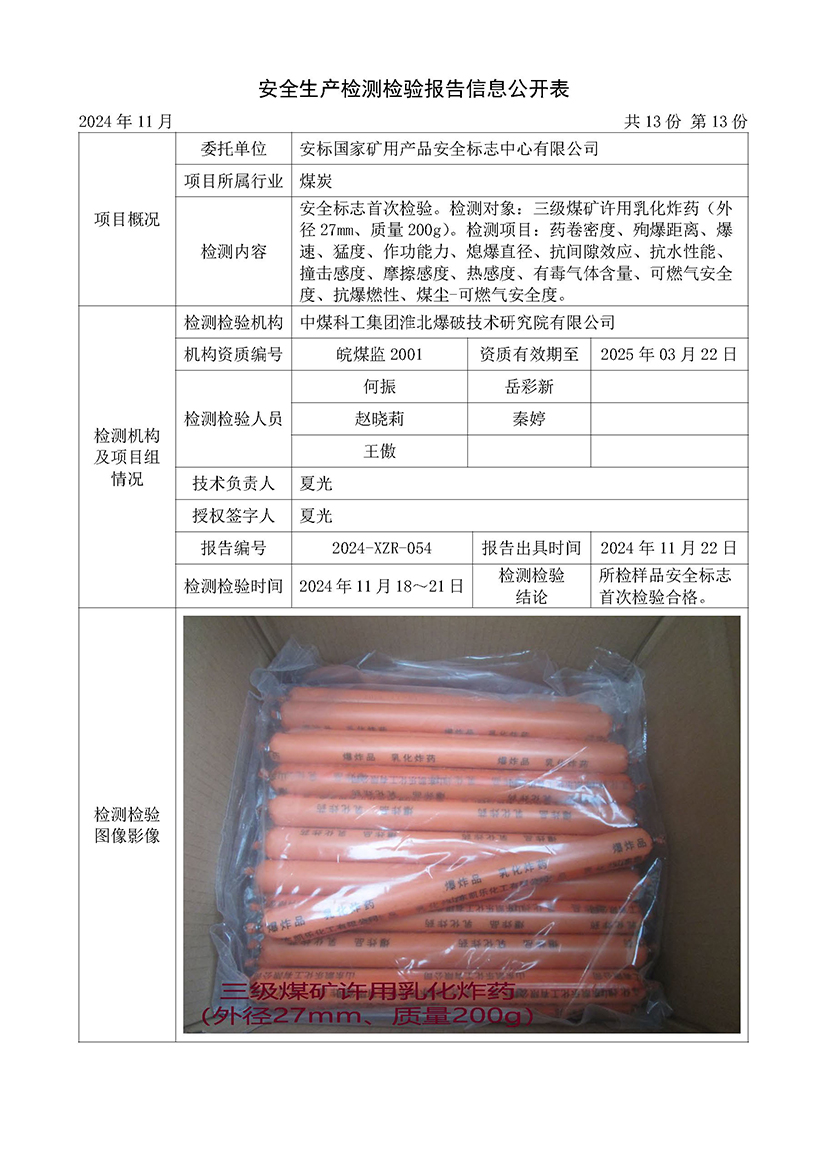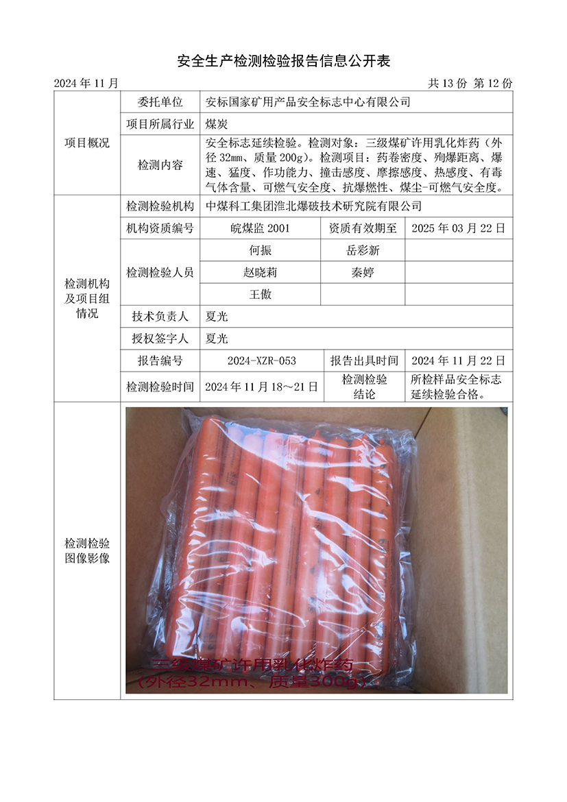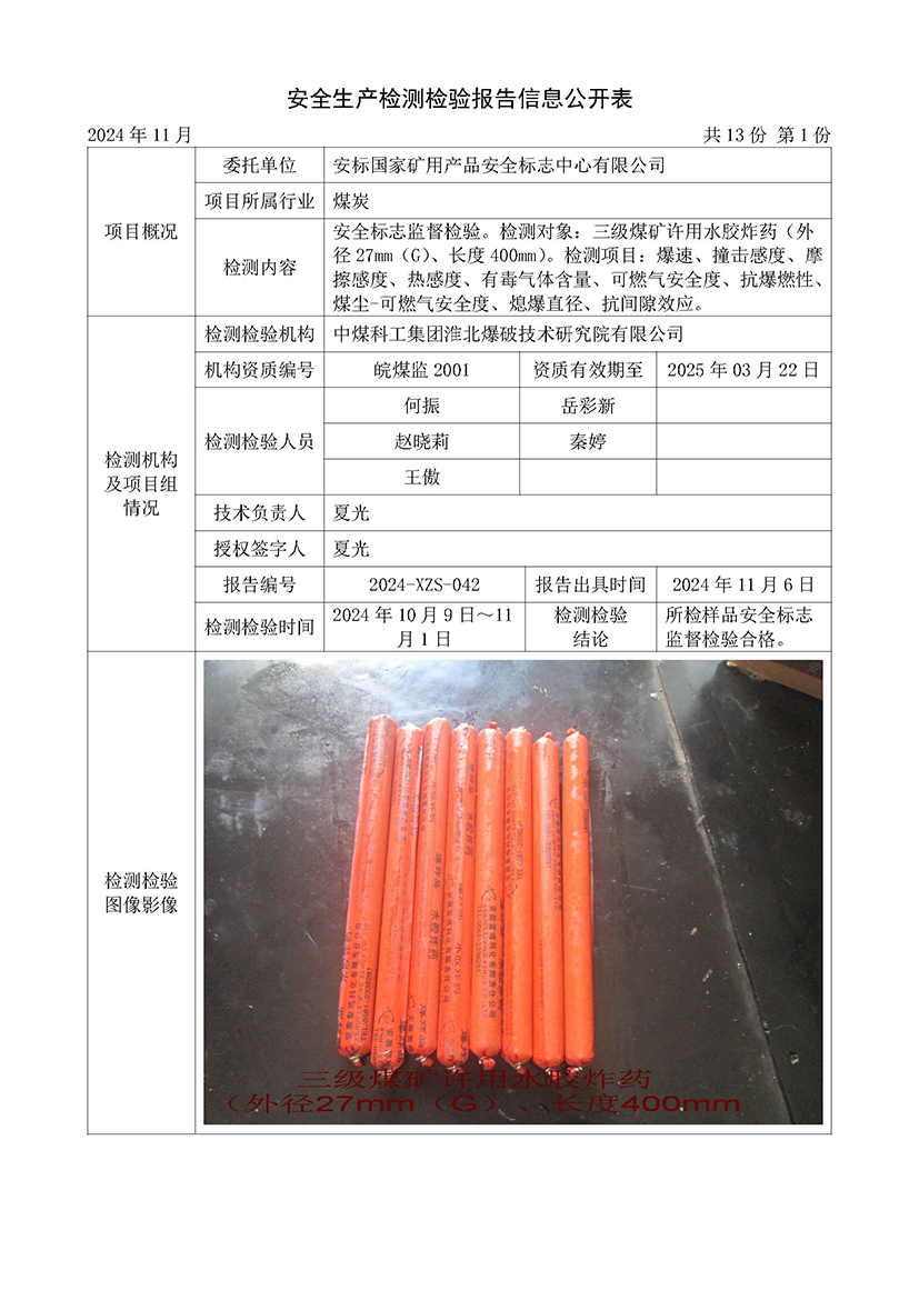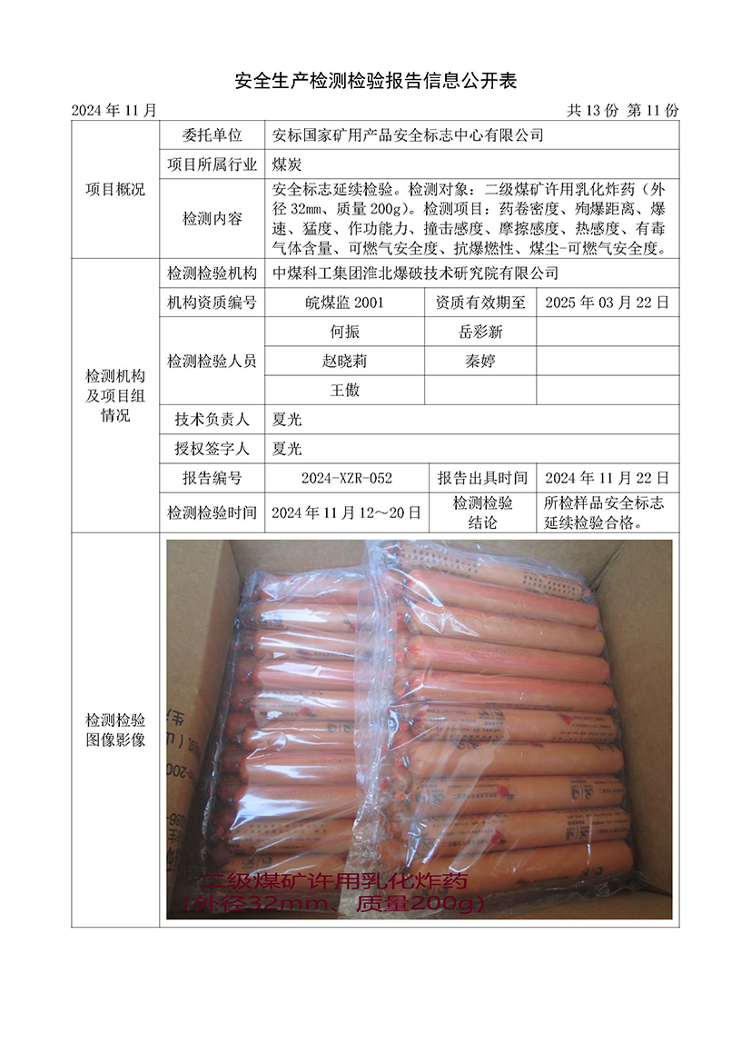 安全生產(chǎn)檢測檢驗報告信息公開表(2024年11月份)