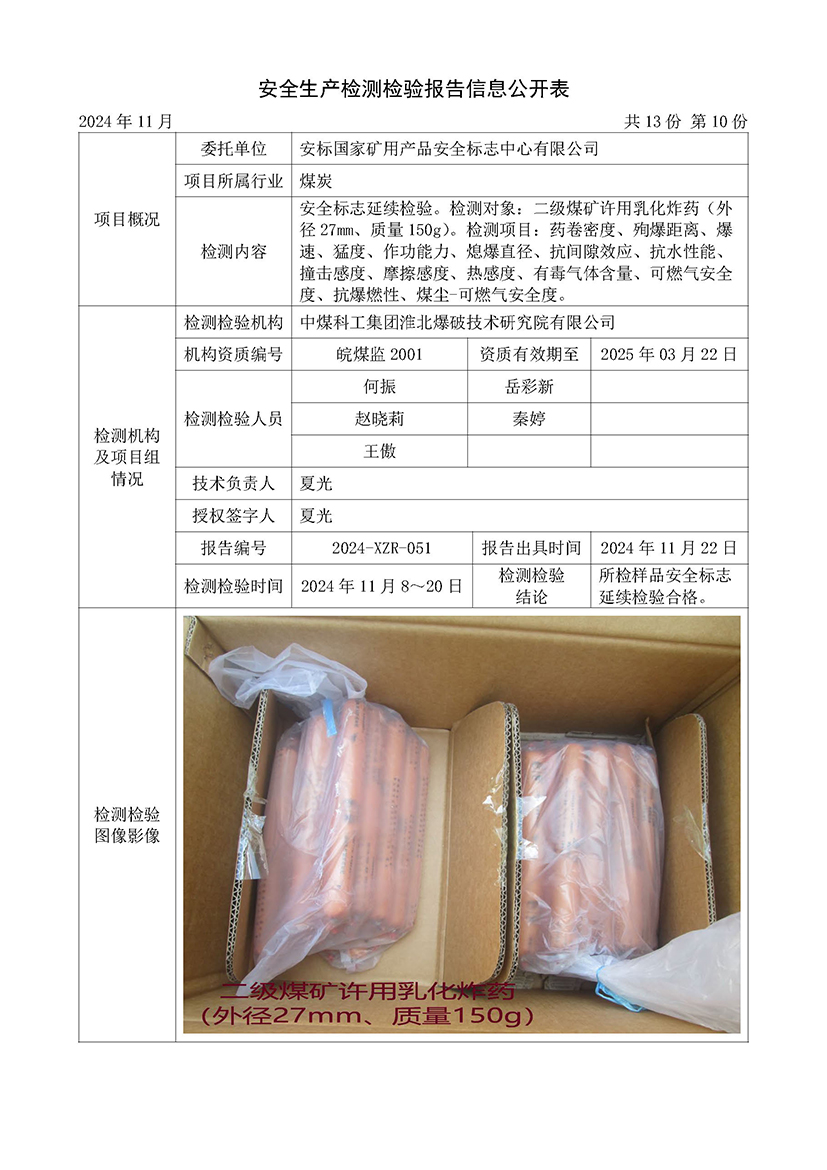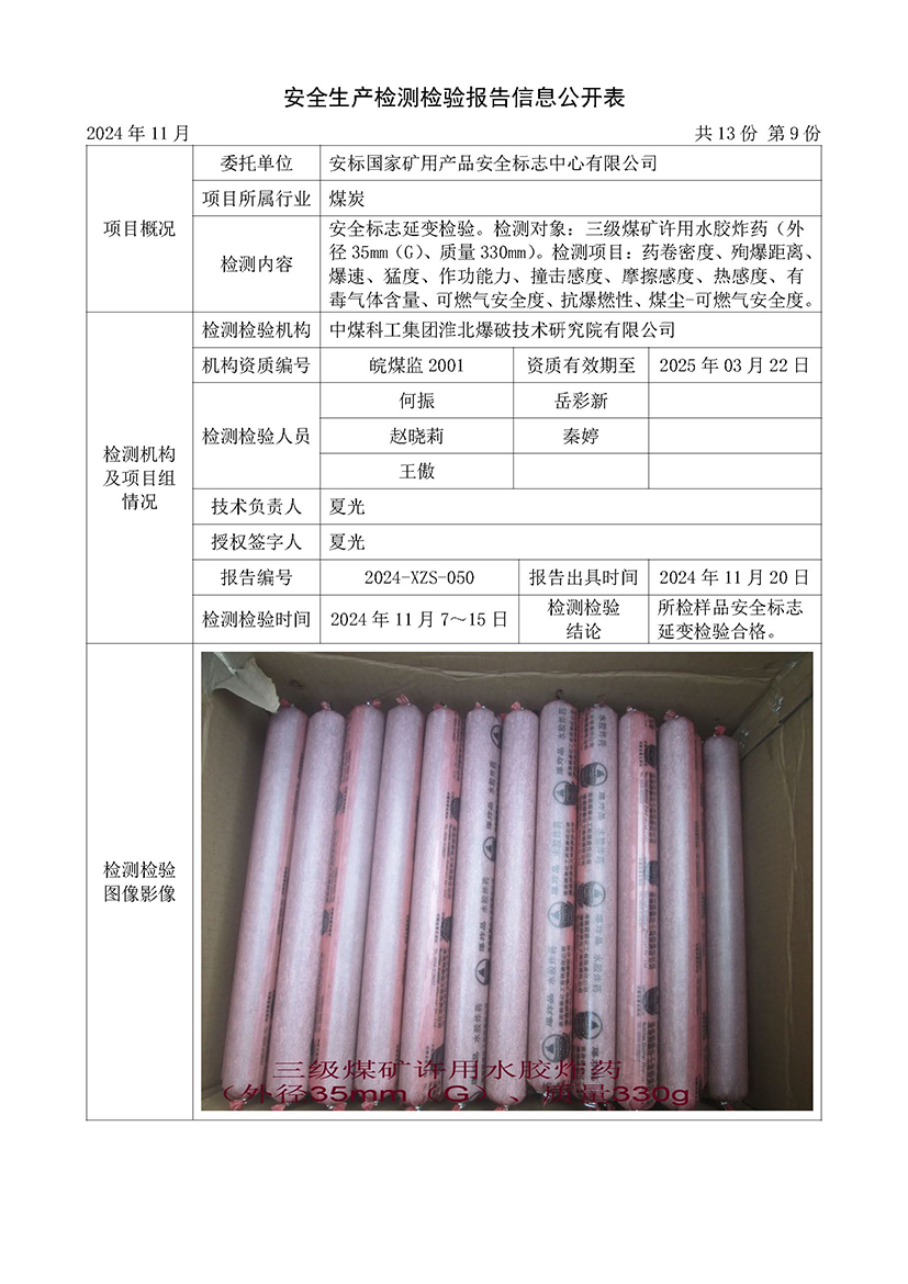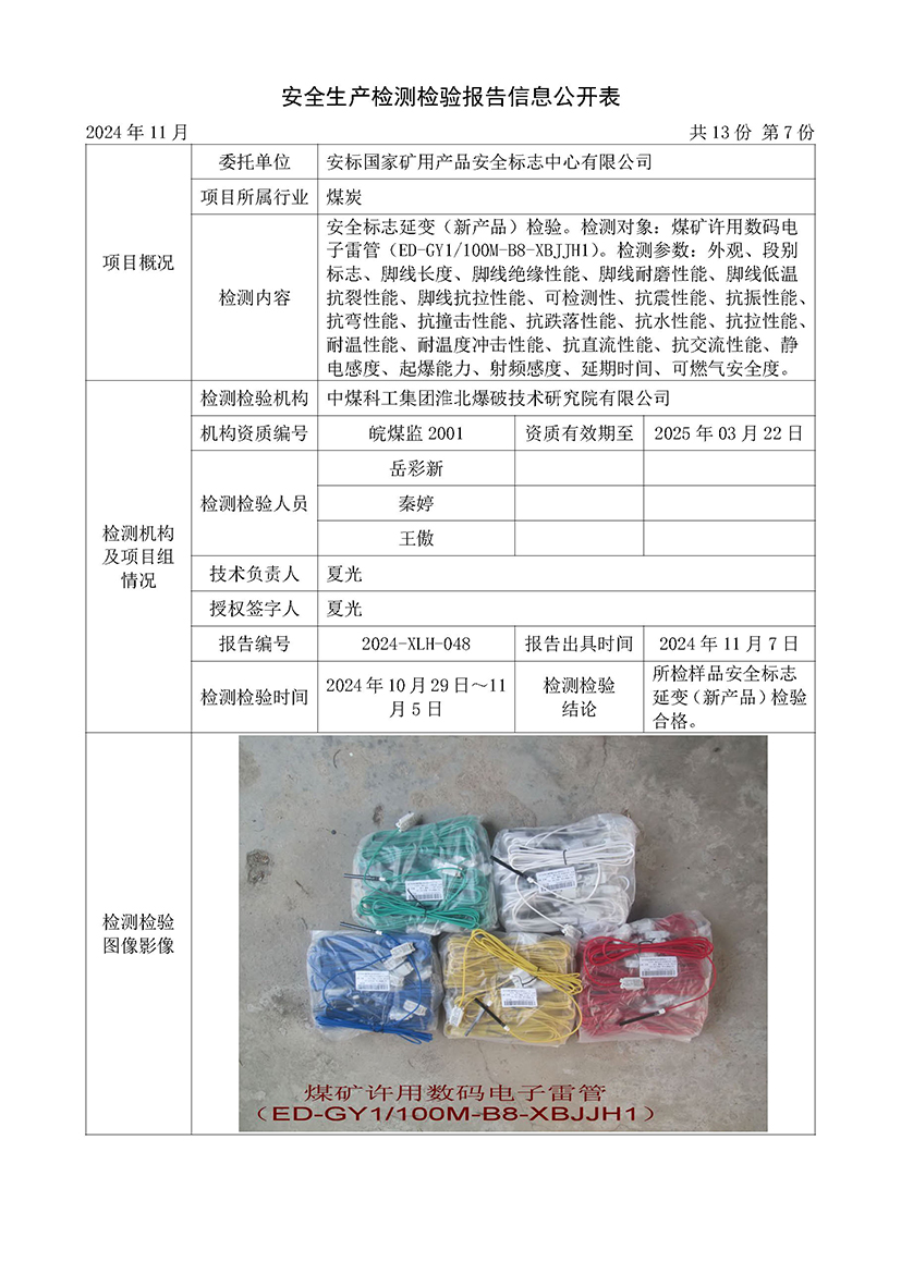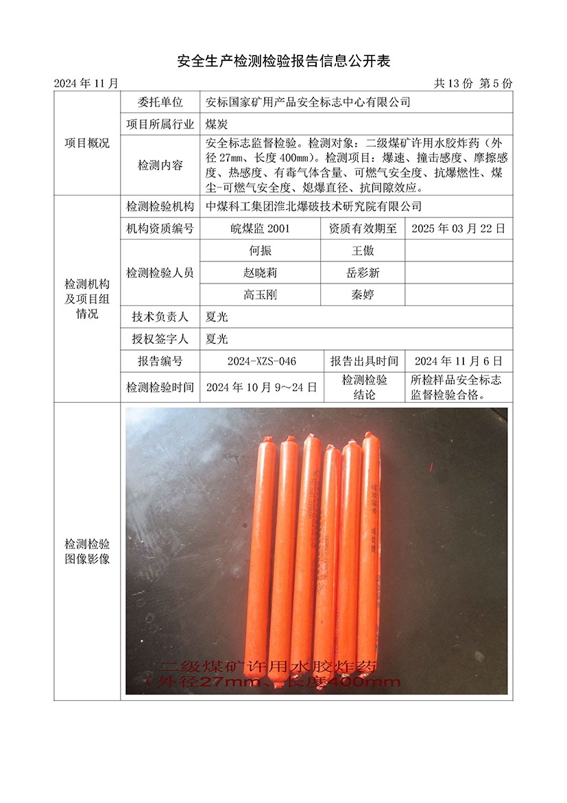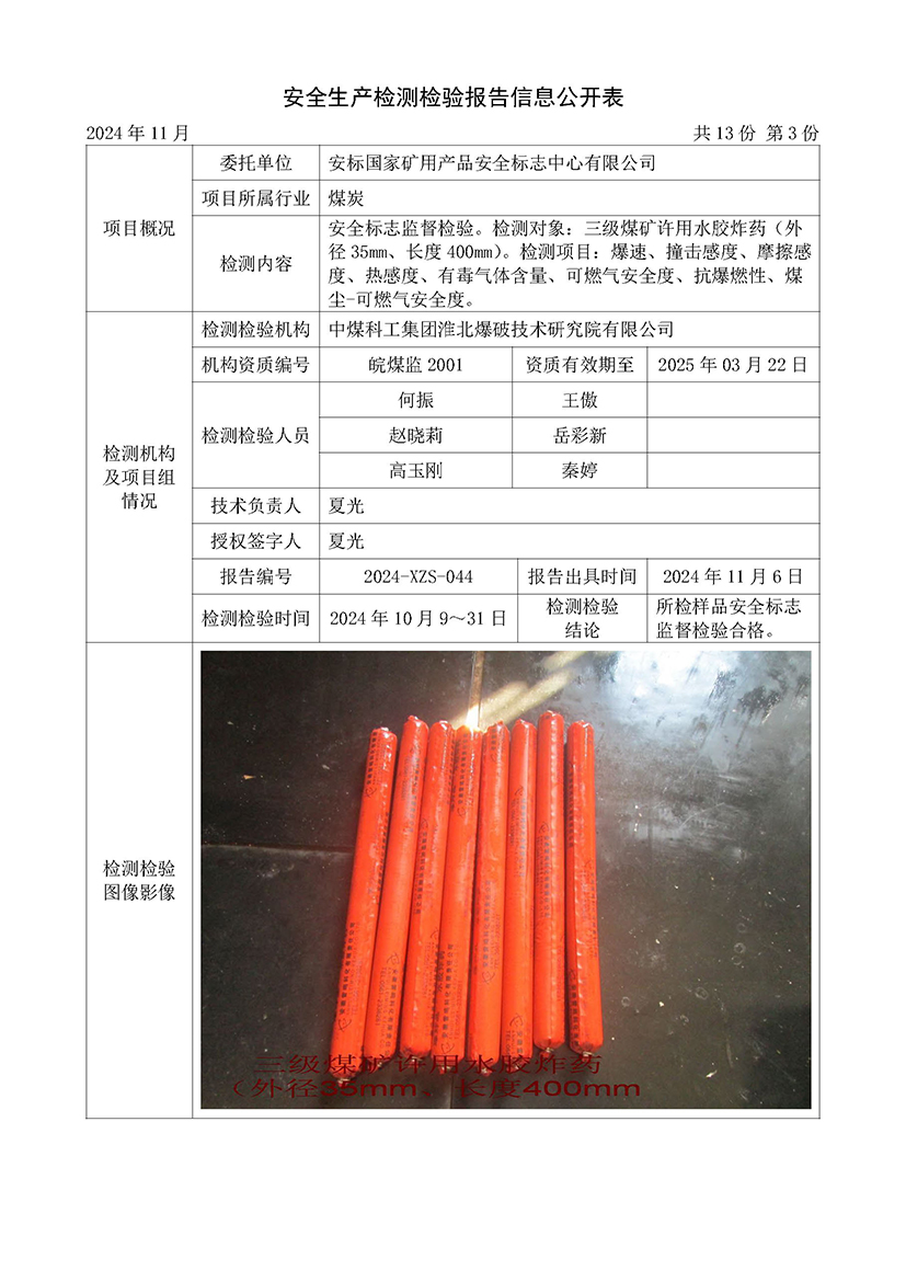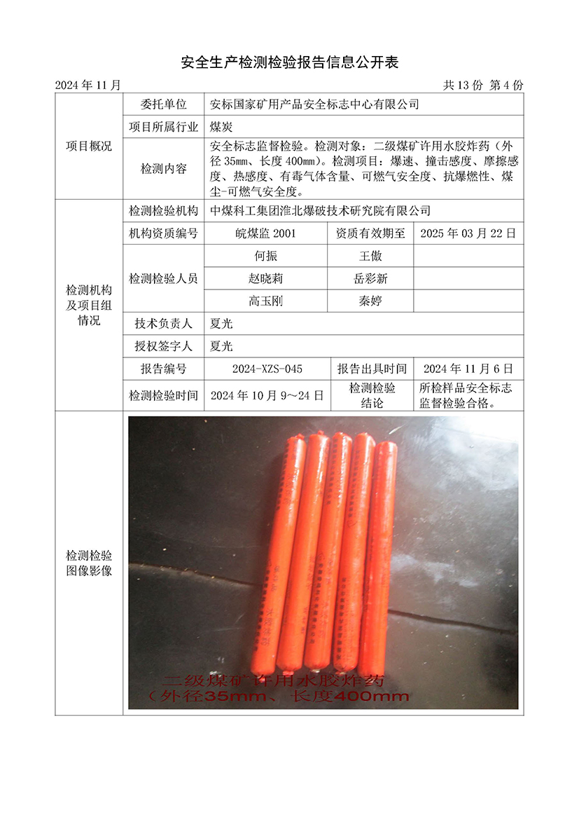 安全生產(chǎn)檢測檢驗報告信息公開表(2024年11月份)
