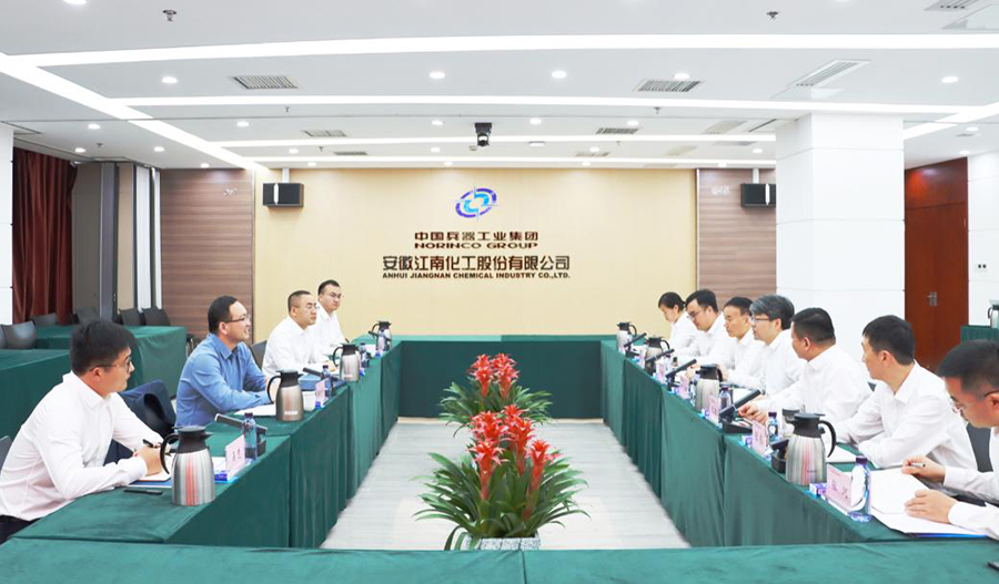 江南化工總裁代五四對陳金華院長一行到訪表示熱烈歡迎,介紹了江南化工改革歷程和業(yè)務(wù)發(fā)展情況,他表示,江南化工是民爆及新能源業(yè)務(wù)“雙核驅(qū)動”的上市公司,是兵器工業(yè)集團打造國家民爆現(xiàn)代產(chǎn)業(yè)鏈“鏈長”的核心單位,并對爆破院長期以來對江南化工的鼎力支持表示認(rèn)同和感謝。