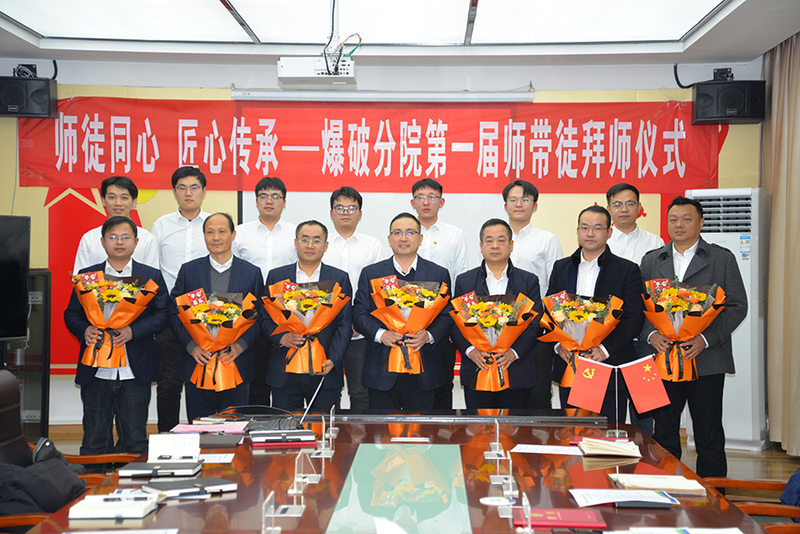為大力弘揚(yáng)工匠精神,努力構(gòu)建爆破分院人才儲(chǔ)備“雁陣格局”,更好地傳承和發(fā)揚(yáng)“傳幫帶”精神,進(jìn)一步營(yíng)造濃厚的學(xué)習(xí)氛圍,切實(shí)提高青年員工專(zhuān)業(yè)水平和職業(yè)素養(yǎng),12月20日下午,爆破分院在二樓會(huì)議室隆重舉行了首屆導(dǎo)師聘任暨拜師儀式,劉治兵副院長(zhǎng)主持會(huì)議,陳金華院長(zhǎng)等出席會(huì)議。