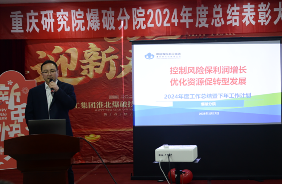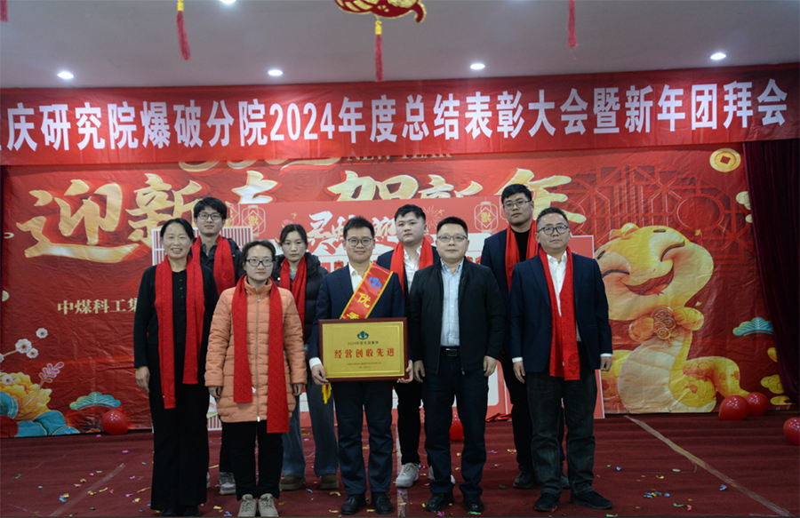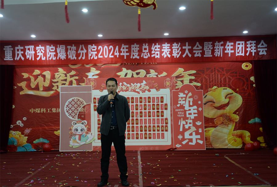 1月17日下午,爆破分院召開2024年度總結(jié)表彰暨新春團(tuán)拜會。重慶研究院黨委副書記、總經(jīng)理李建國、總工辦主任董鋼鋒、經(jīng)營管理部主任陳東出席會議,與分院全體員工齊聚一堂、恭賀新春。