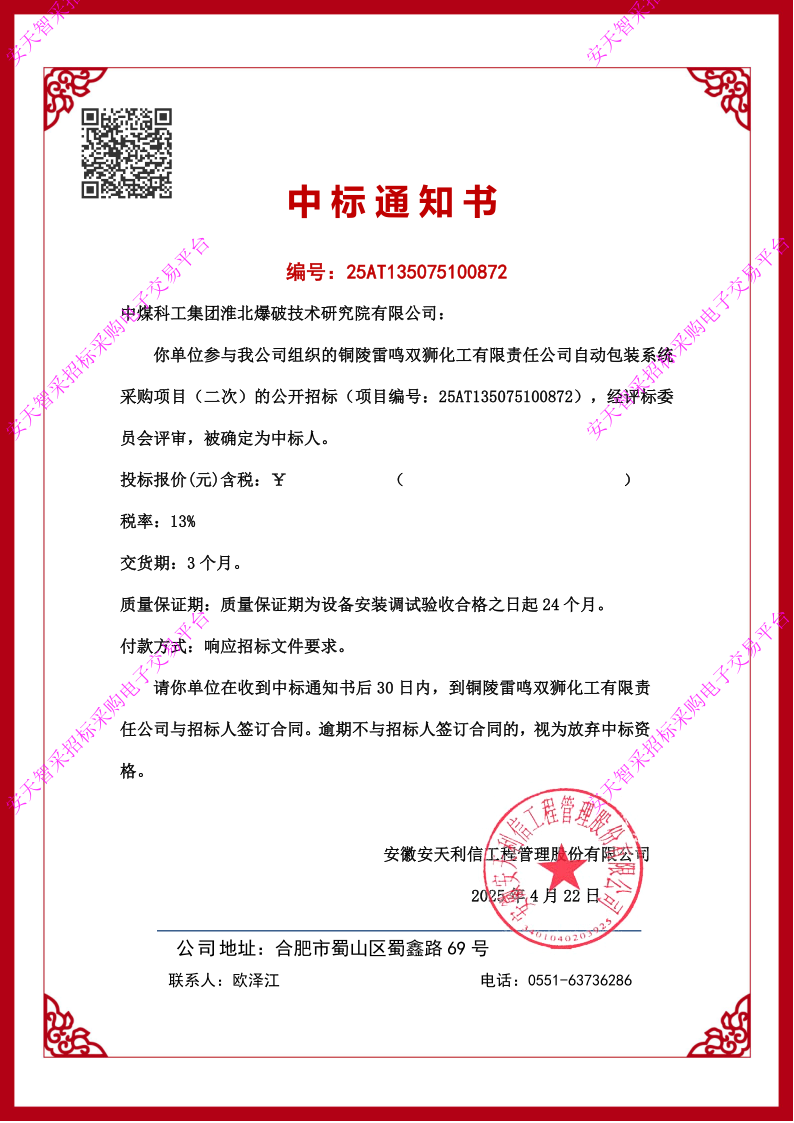 近日,爆破分院智能包裝線項(xiàng)目捷報(bào)頻傳,憑借卓越的技術(shù)實(shí)力與優(yōu)質(zhì)的服務(wù)水平,連續(xù)中標(biāo)湖北帥力化工有限公司和銅陵雷鳴雙獅化工有限責(zé)任公司等多家包裝線項(xiàng)目。