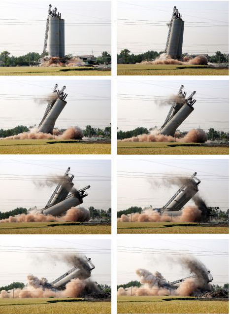2017年5月21日下午4時,隨著我院爆破公司張計璨副經(jīng)理發(fā)出“起爆”口令,“轟”的一聲,兩座高達40余米的石灰窯體按設計方向倒塌。這標志著由我院爆破公司承擔的石灰窯體爆破拆除工程成功完成。